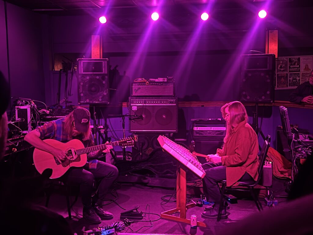 Opening the show was the great Powers / Rolin Duo, the project of partners Jen Powers on hammered dulcimer and Matthew J Rolin on 12 string acoustic. I’ve been a fan of them for a while, and have seen other projects they are in, but had never seen them together. They played a great 35 minute set that showcased a hypnotic blend of cosmic Americana and dusty ambient. Powers laid much of the atmosphere, with Rolin adding in layers of sound and then dancing over the tones with intrepid melodies from his guitar.